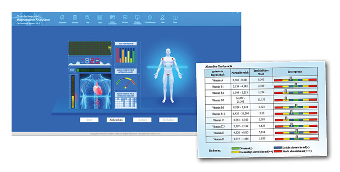 Der Scan macht die Wirksamkeit und Verträglichkeit von Informationen, Präparaten, Nahrungsmitteln und Nahrungsergänzungsprodukten sichtbar, identifiziert Umweltbelastungen durch Toxine, Elektrosmog, Handys und andere Störquellen.